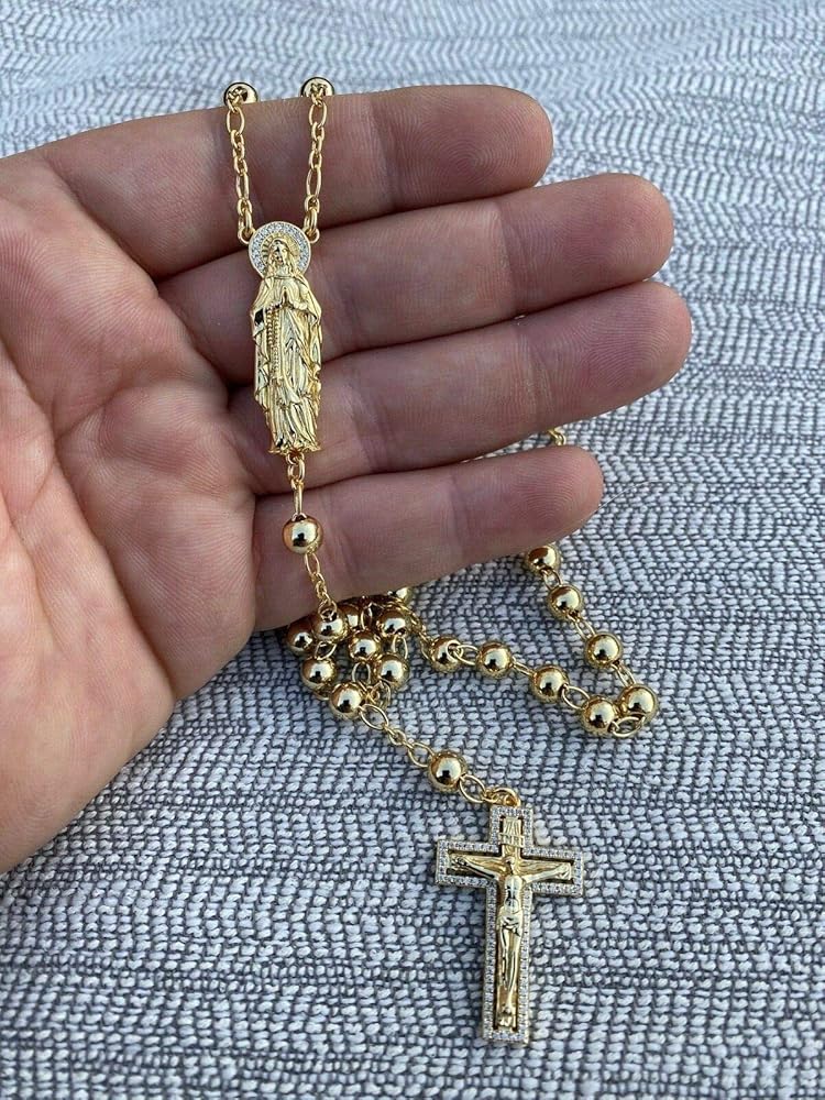 14k Gold Rosary Necklace 18 24 REAL 14KT Yellow Gold Jesus Cross Chain Pendant Very well made.