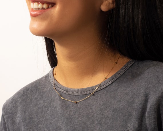 Triple Stacked Beaded Chain Necklace Caitlyn Minimalist 18K Gold Very well made.