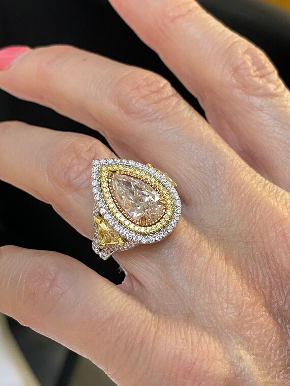 5.11CT Faint Pink Pear Shaped Diamond Engagement Ring Trillion Sides Art Deco Halo Pear Cut Diamond Ring 18k White Gold Anniversary Ring Etsy Very well made.