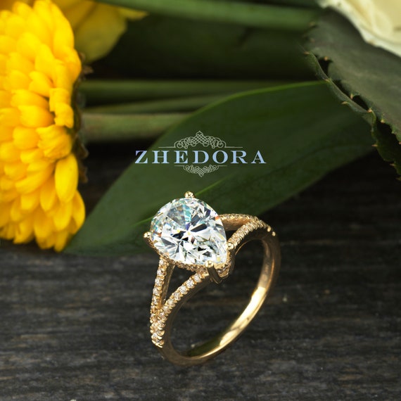 3.20 CT Pear Engagement Ring in 14K 18K Yellow Gold Split Shank Pear Cut Engagement Ring Moissanite Pear Cut Ring Pear Engagement Ring Etsy Very well made.