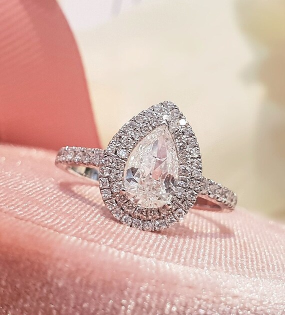 2 Carat Pear Shaped Engagement Ring Double Halo Engagement Ring Lab Grown Diamond Engagement Ring CVD Diamond Ring Teardrop Diamond Ring Etsy Very well made.