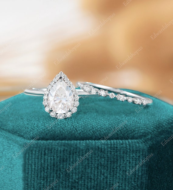 Vintage Pear Shaped Moissanite Engagement Ring Set Women White Gold Engagement Ring Unique Diamond Wedding Halo Anniversary Art Deco Ring Etsy Very well made.