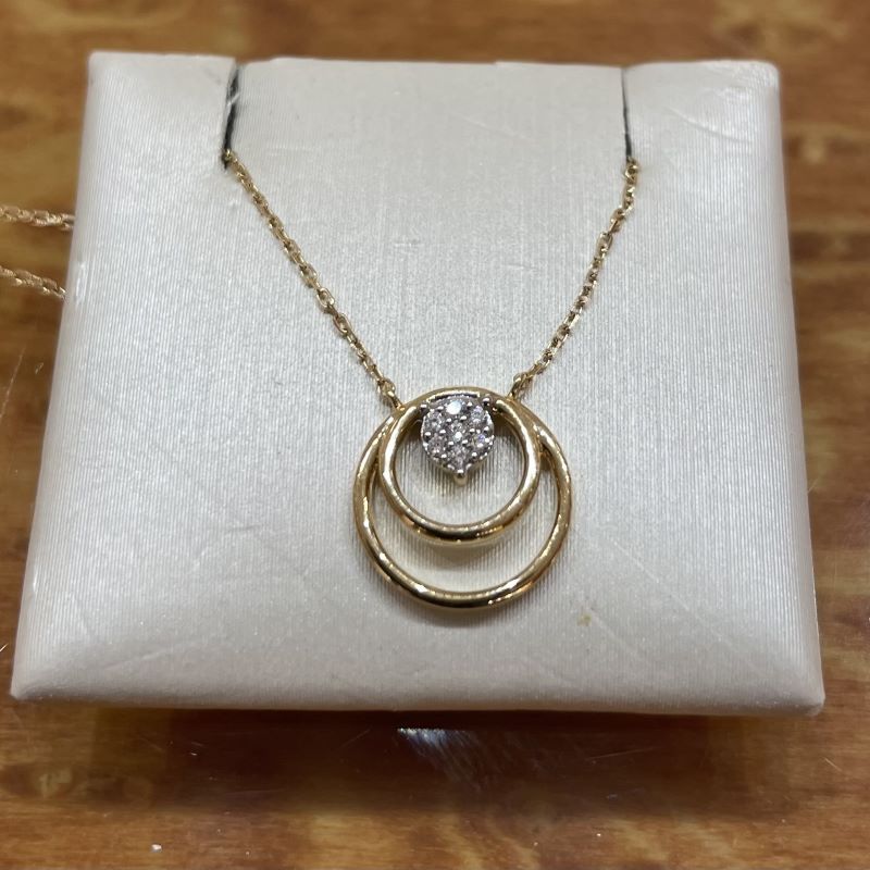 Dainty Round 18K Gold Diamond pendant with chain NK 3870 Very well made.
