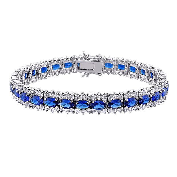 Stella Grace Sterling Silver Lab Created Blue White Sapphire Bracelet Women s Size 7 Very well made.