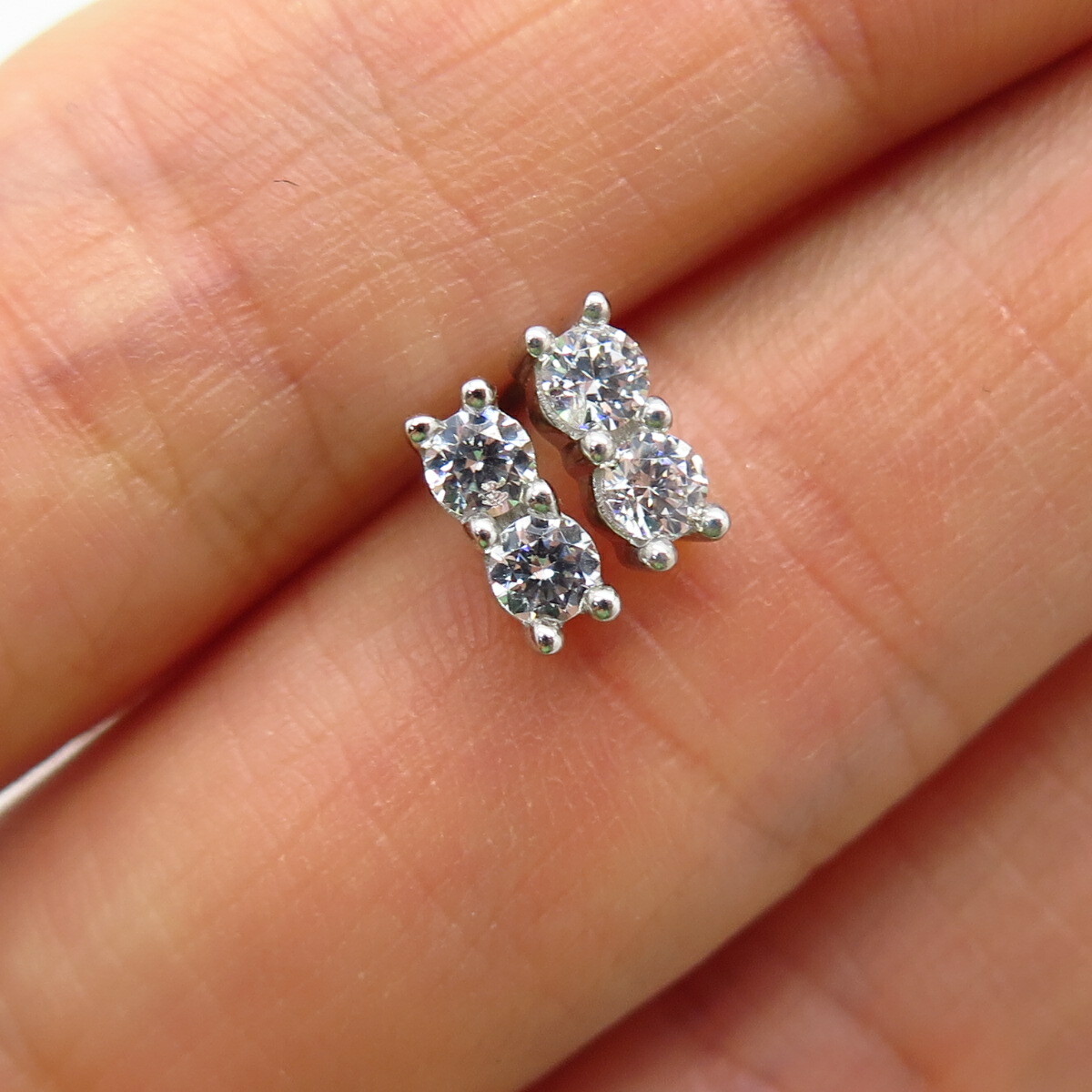 925 Sterling Silver C Z Bar Design Small Stud Earrings Very well made.