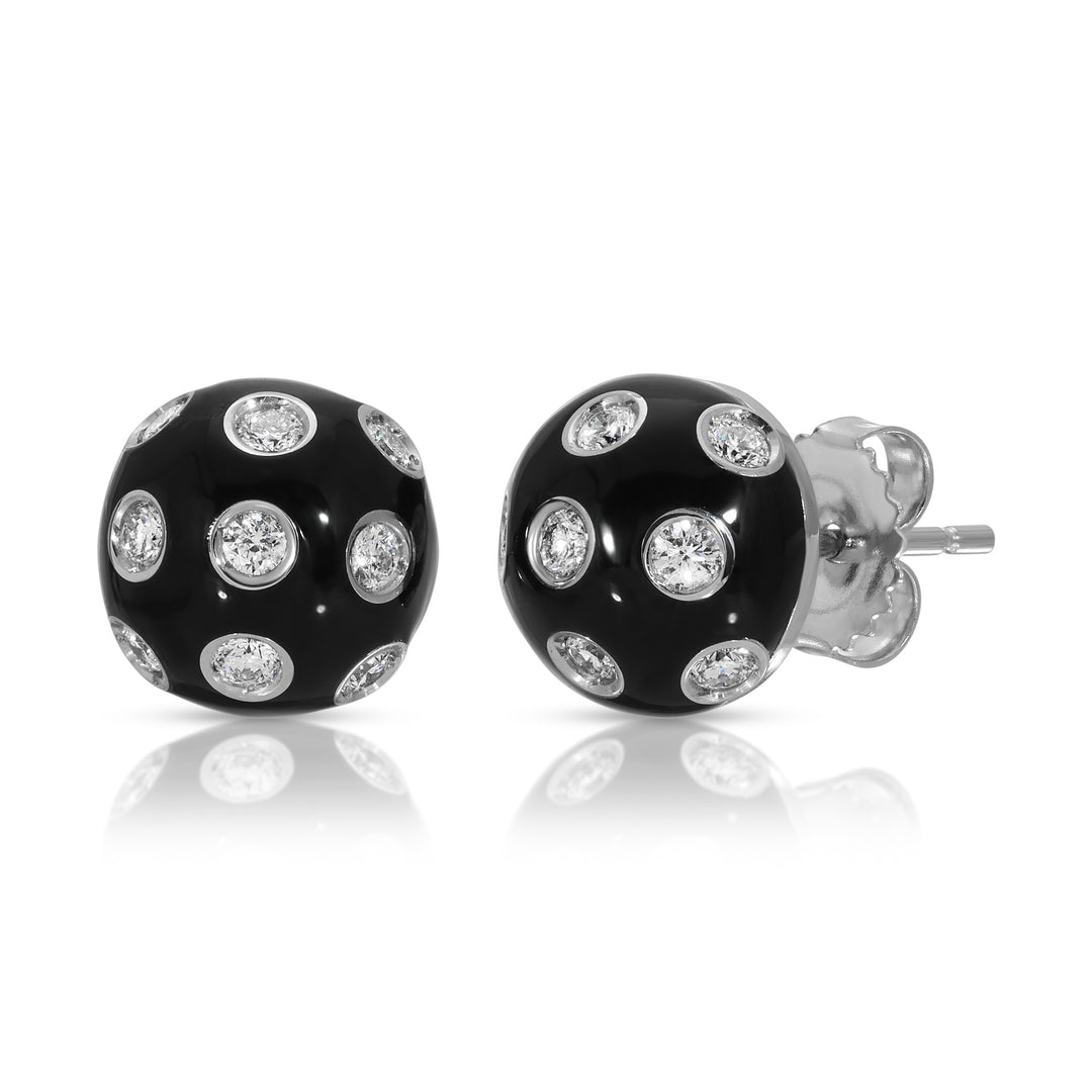 LORD Jewelry 18K white button earrings studs black enamel Very well made.