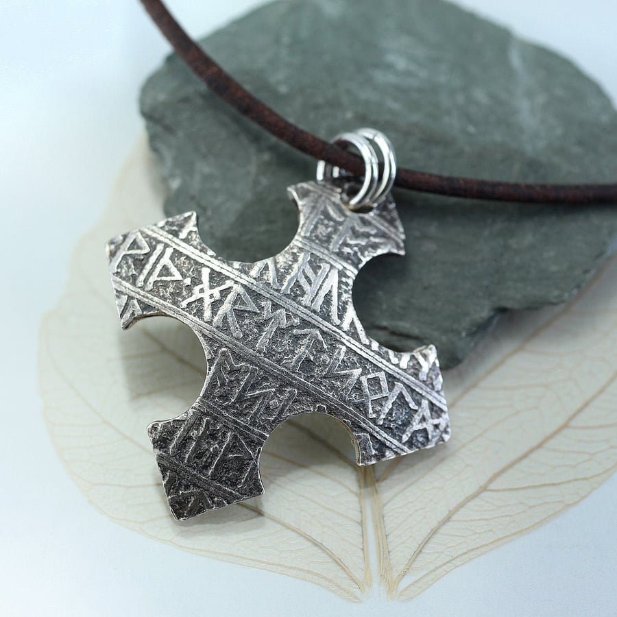 Viking Silver Cross Pendant with Rune Pattern . Folksy Very well made.
