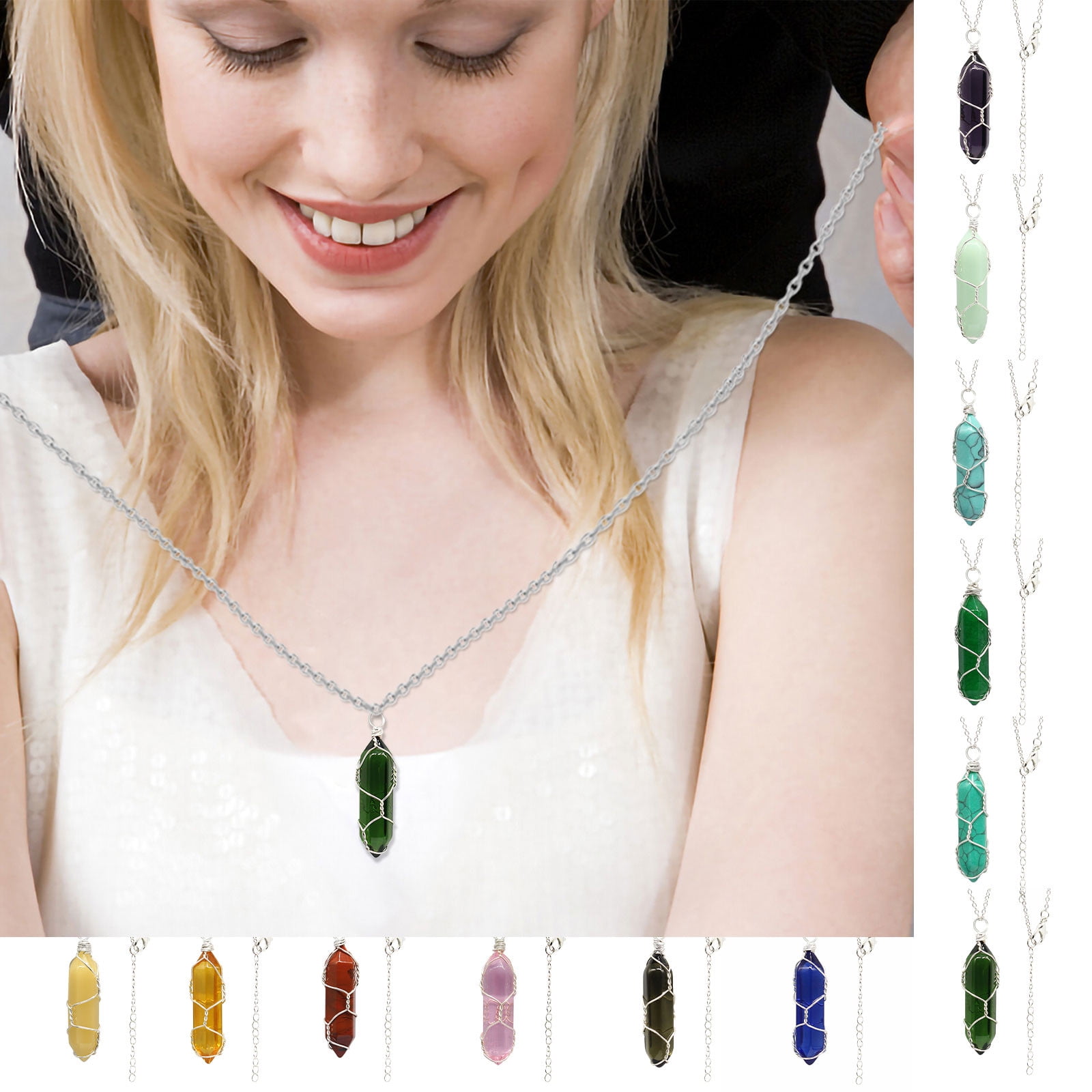 Kiplyki Wholesale Hexagonal Crystal Stone Necklace For Women Irregular Natural Wrapped Wire Chakra Rainbow Gemstone Pendant Jewelry Alloy Chains Valentine s Day Gift Walmart Very well made.