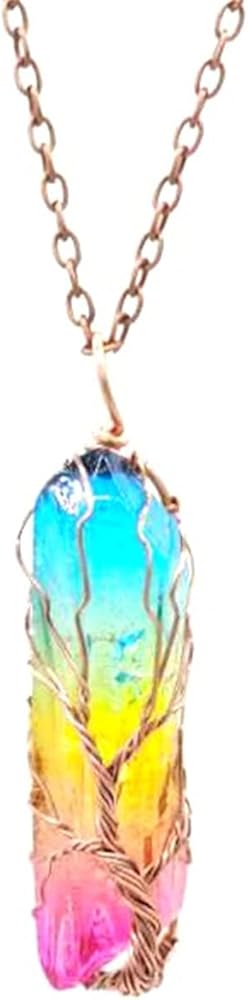 Wire Wrapped Tree of Life Natural Quartz Crystal Pendant Necklace Handmade Pointed Chakra Gemstone Reiki Stone Necklace for Women Men Gift Yoga Very well made.