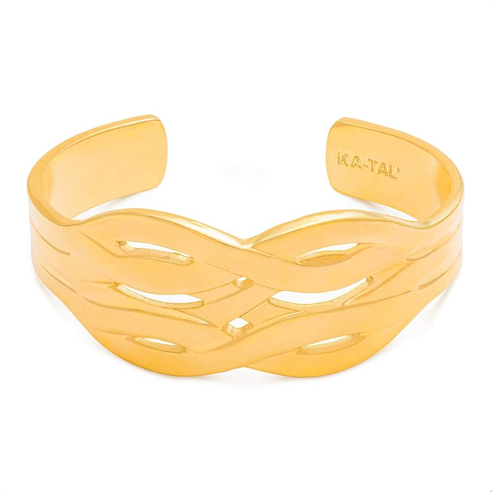 KA TAL SeaWave Small Wrist Cuff Bracelet 14K Gold Plated Shiny Finish Outside and Inside with Gift Pouch and Polishing Cloth Very well made.