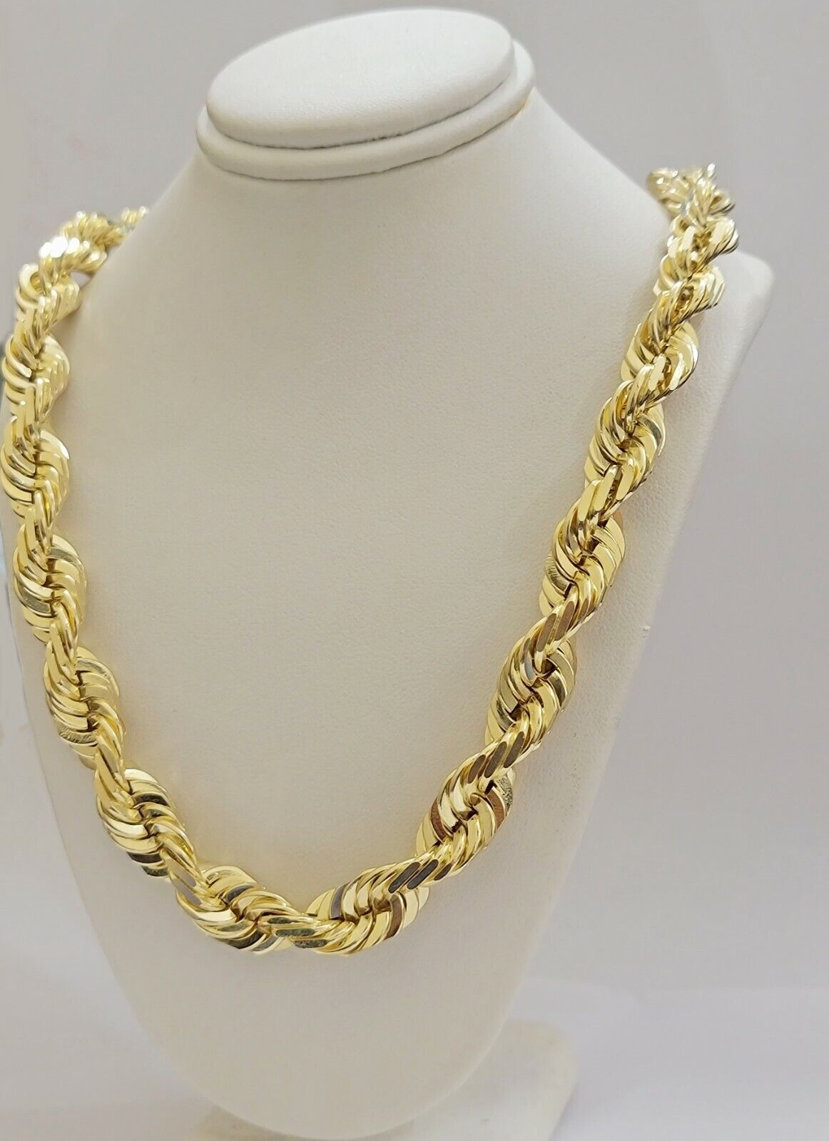 14mm Solid 10K Yellow Gold Rope Chain Necklace 28 inch Mens Thick Heavy Shiny Very well made.