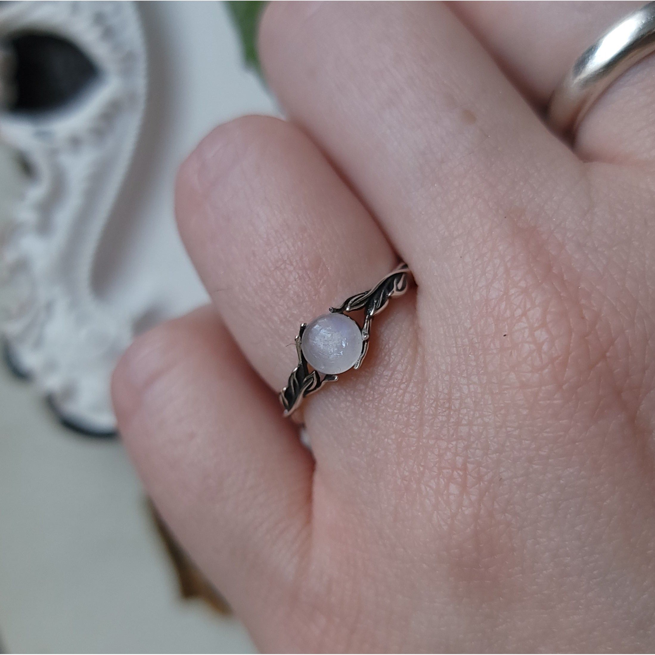 Dainty Natural Moonstone Leaf Ring 2Ct Oval Cut Twig Moonstone Ring Rose Gold Ring Unique Curved Floral Ring Size 8 Very well made.