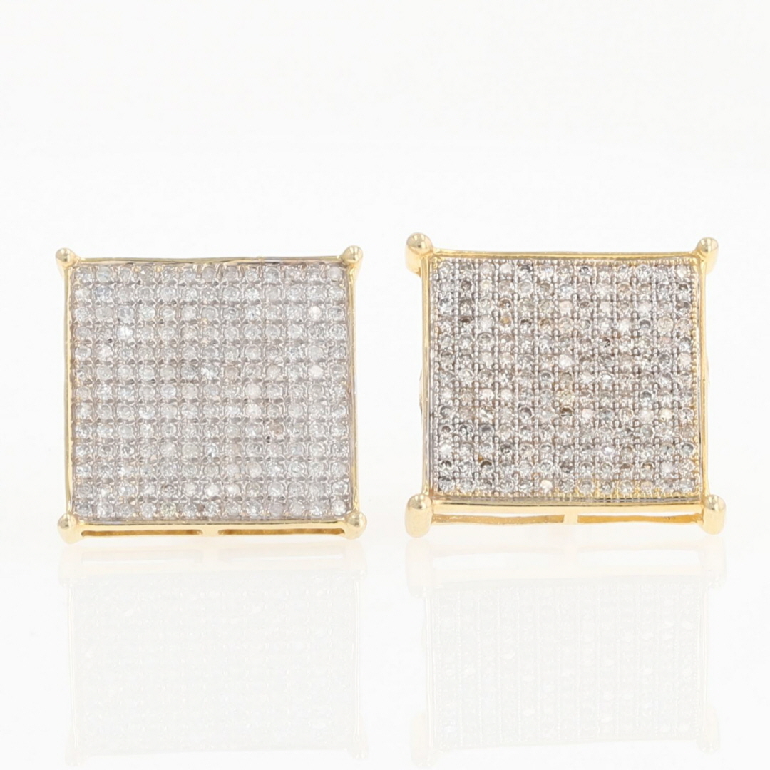 48ctw Round Diamond Pave Square Stud Pair Earrings 10k Yellow Gold 3.26 Grams Very well made.