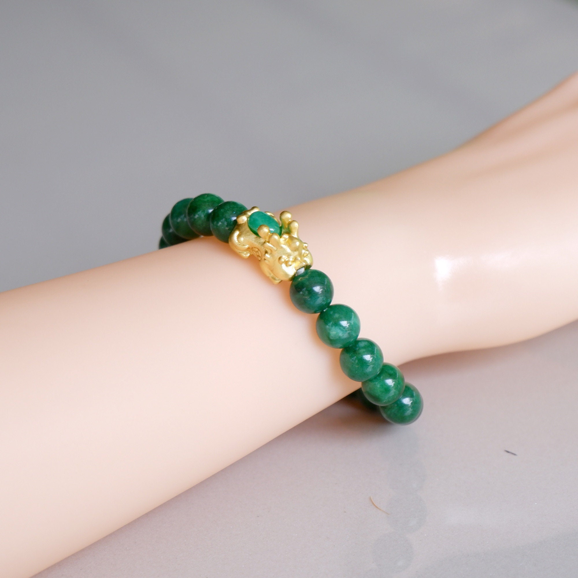 Green Jade Bracelet With Gold Plate Pixiu Dragon or Feng Shui Dragon for Proctection Wealth and Wish Bracelet With Bead Size 8mm Etsy Very well made.
