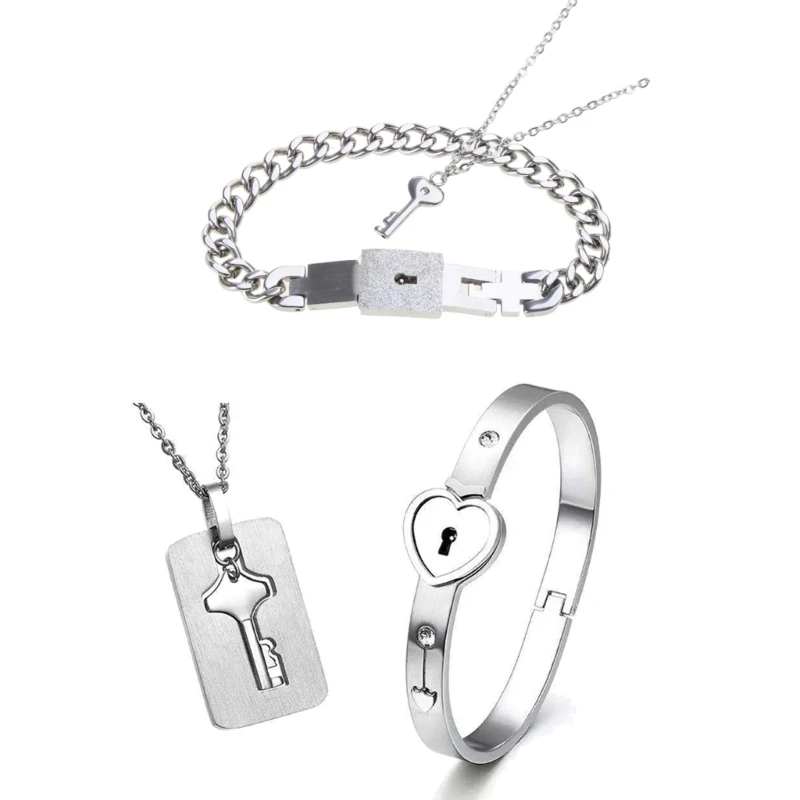 Silver Heart Lock And Key Stainless Steel Couple Bracelet Necklace Set Size Free Size at 200 set in Vadodara Very well made.