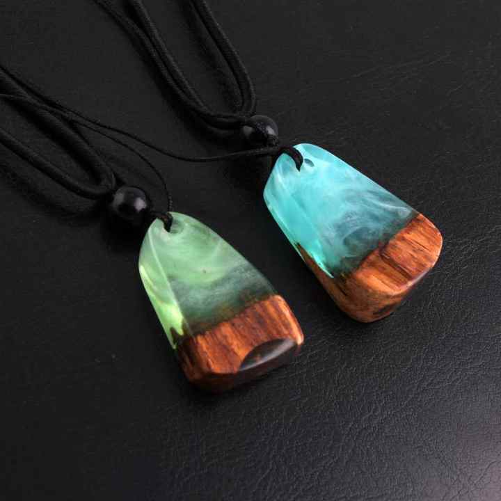 Fashion Geometric Wooden Resin Necklace Pendant Epoxy Wood Grain Antique Men and Women s Jewelry Woven Rope Very well made.