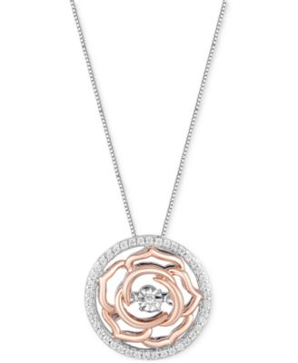 Enchanted Disney Fine Jewelry Belle s Rose and Heart Diamond Pendant 1 10ctw Very well made.