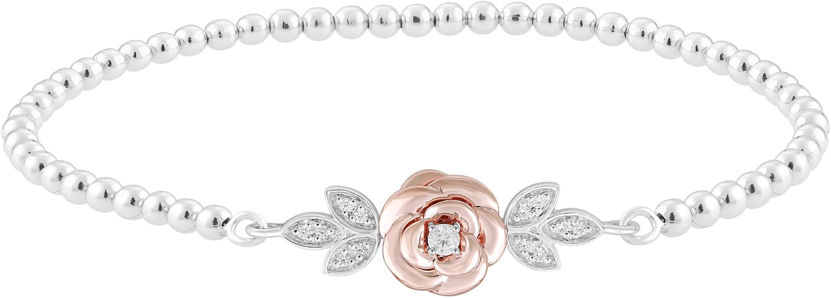 Jewelili Enchanted Disney Fine Jewelry 14K Rose Gold over Sterling Silver with 1 6 CTTW Diamond Belle Rose Stretchable Bracelet Very well made.