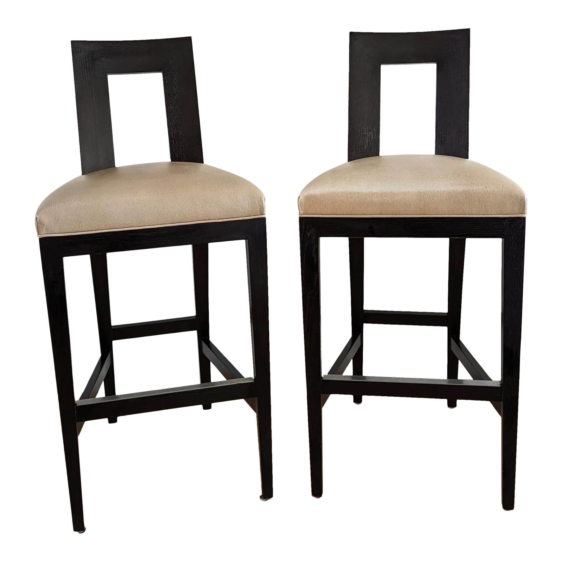 1990s Donghia Margarita Barstool Pair in Shagreen Leather Ebonized Oak Finish Very well made.