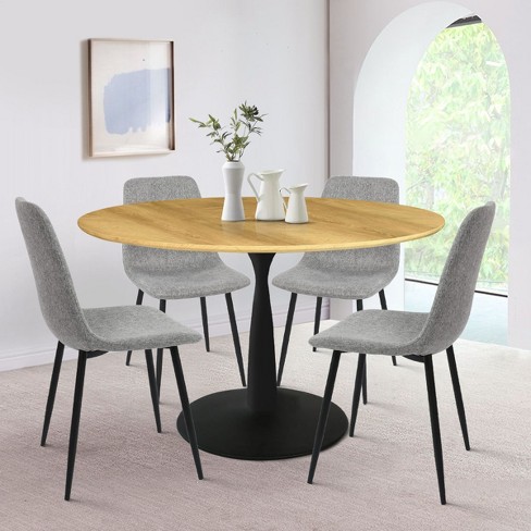 Harrison Bingo 5 Piece Round Shaped Dining Table Set With 4 Gray Upholstered Chairs Black Legs Maison Boucle Very well made.