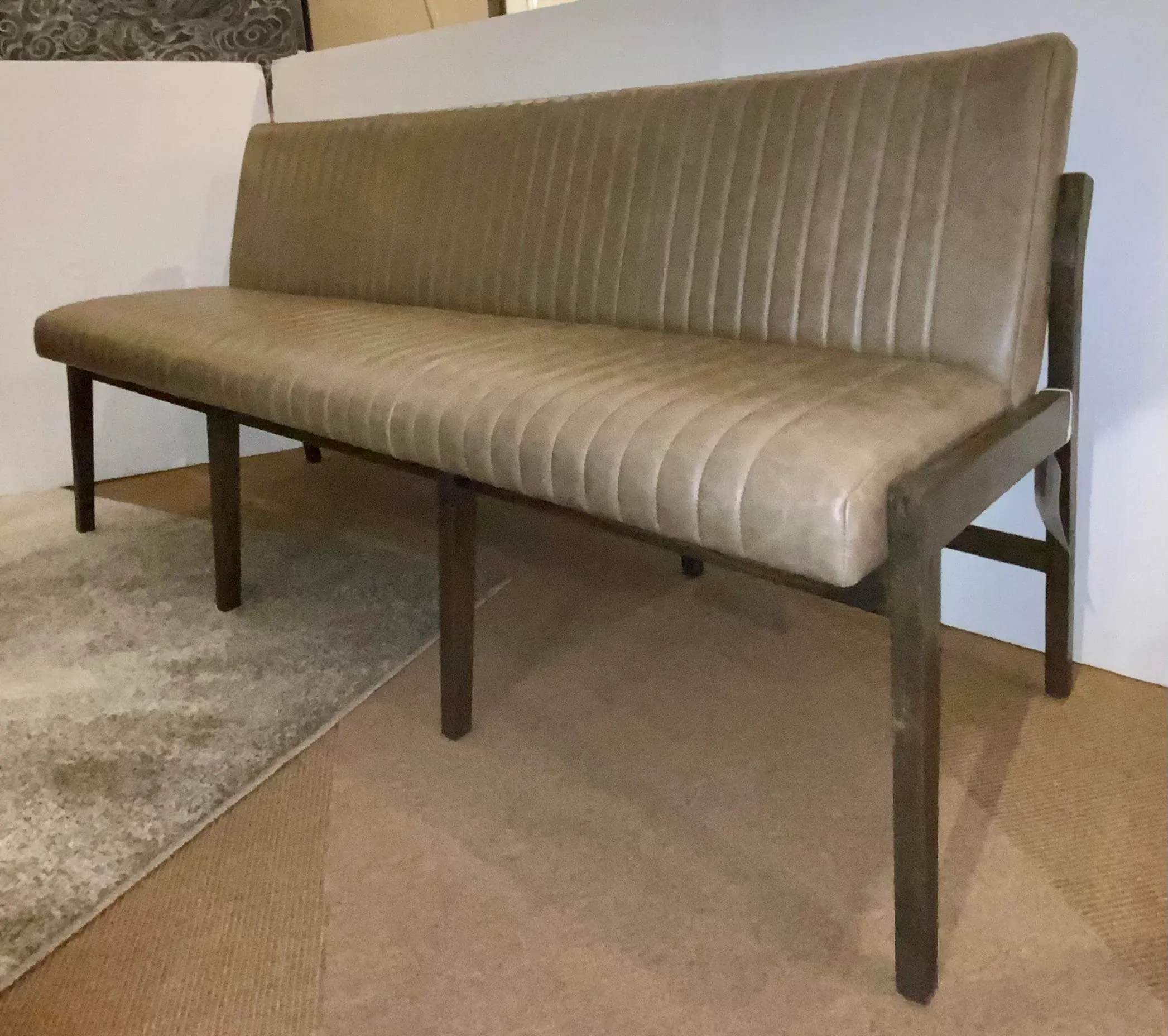 Modern Channeled Taupe Vintage Style Leather Dining Bench Very well made.