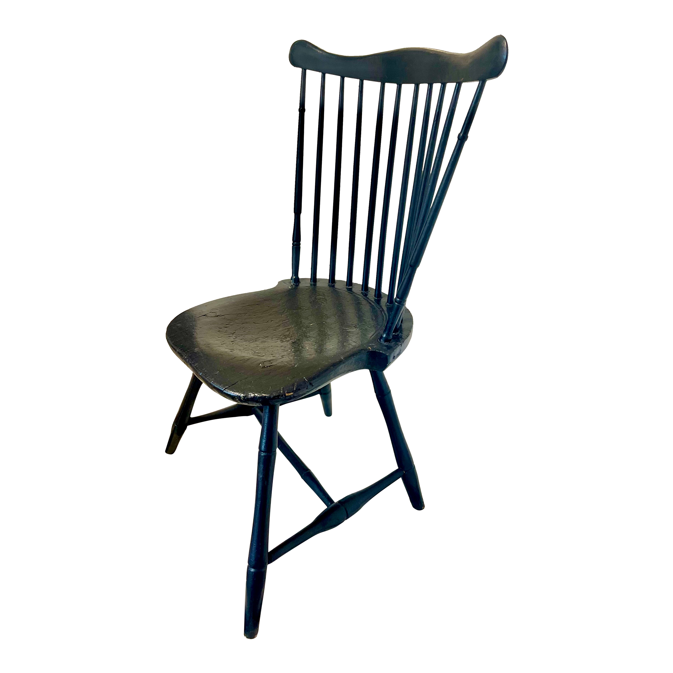 18th C. American Painted Black Fan Back Windsor Chair Very well made.