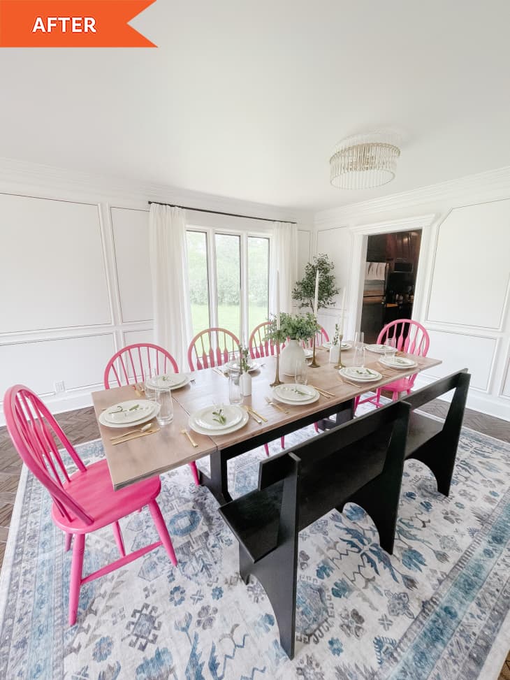 Dining Room Redo with White Paint and Pop of Pink Before and Very well made.