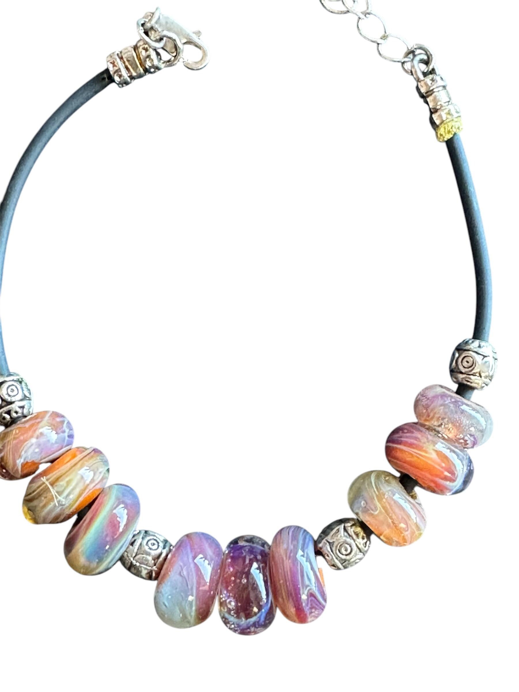 Artisan beaded Bracelet boro bead bracelet. Lampwork bead bracelet glass beads handmade beads Very well made.