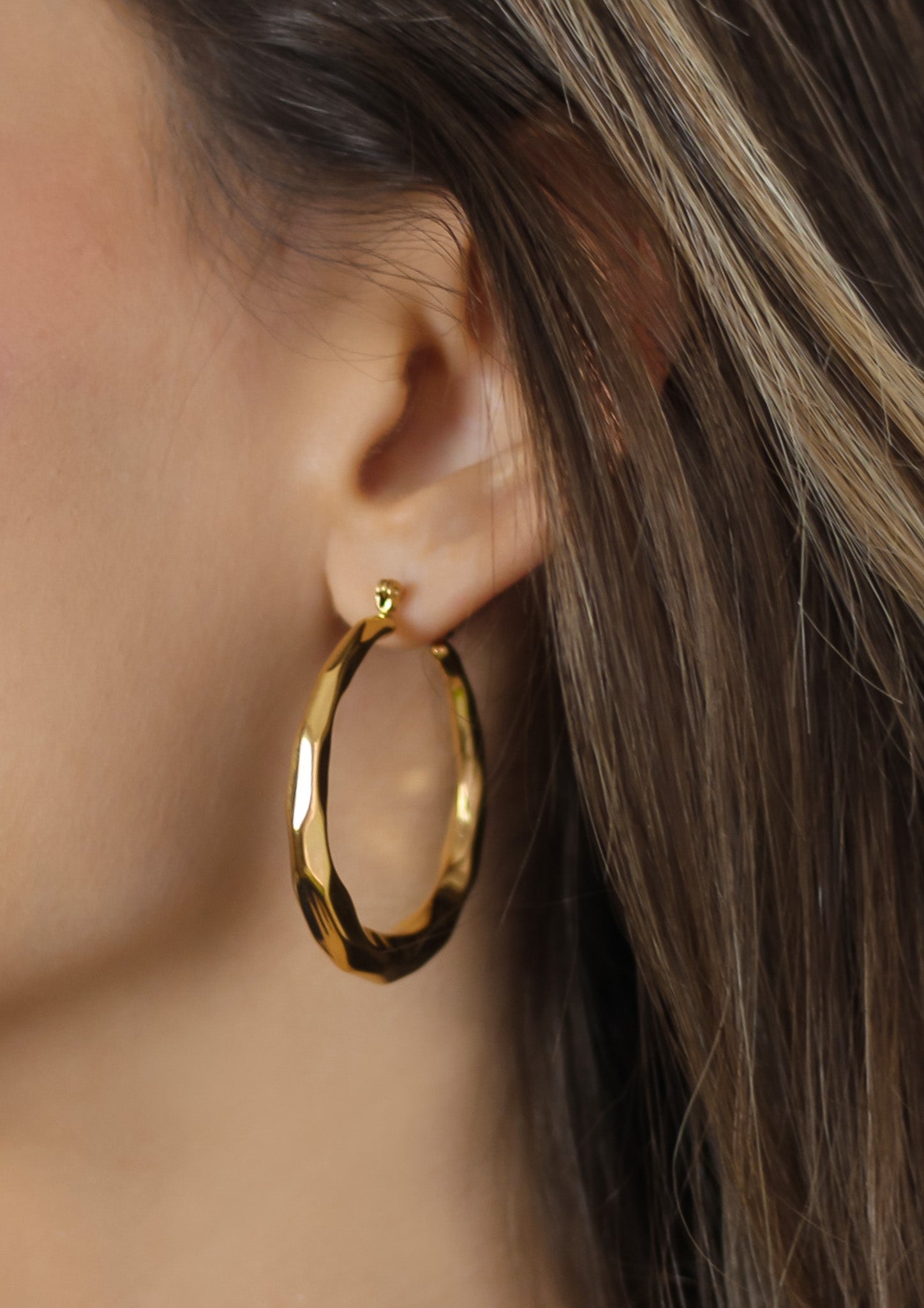 Main Character 18K Gold Plated Textured Abstract Chunky Hoops Waterpro Mademoiselle Jewellery Very well made.