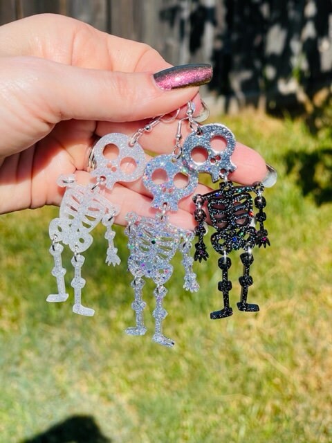Glow in the Dark Articulated Skeleton Earrings Halloween Jewelry Gif Engraved Chaos Very well made.