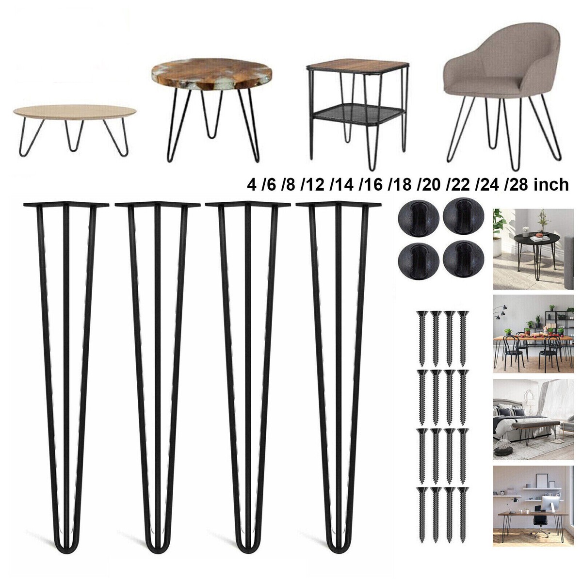 TRIOBLADE 4PCS Hairpin Table Legs 4 28 Sturdy DIY Carbon Steel Table Legs with Free Screws and Floor Protector Feet Stable Furniture Legs Coffee Very well made.