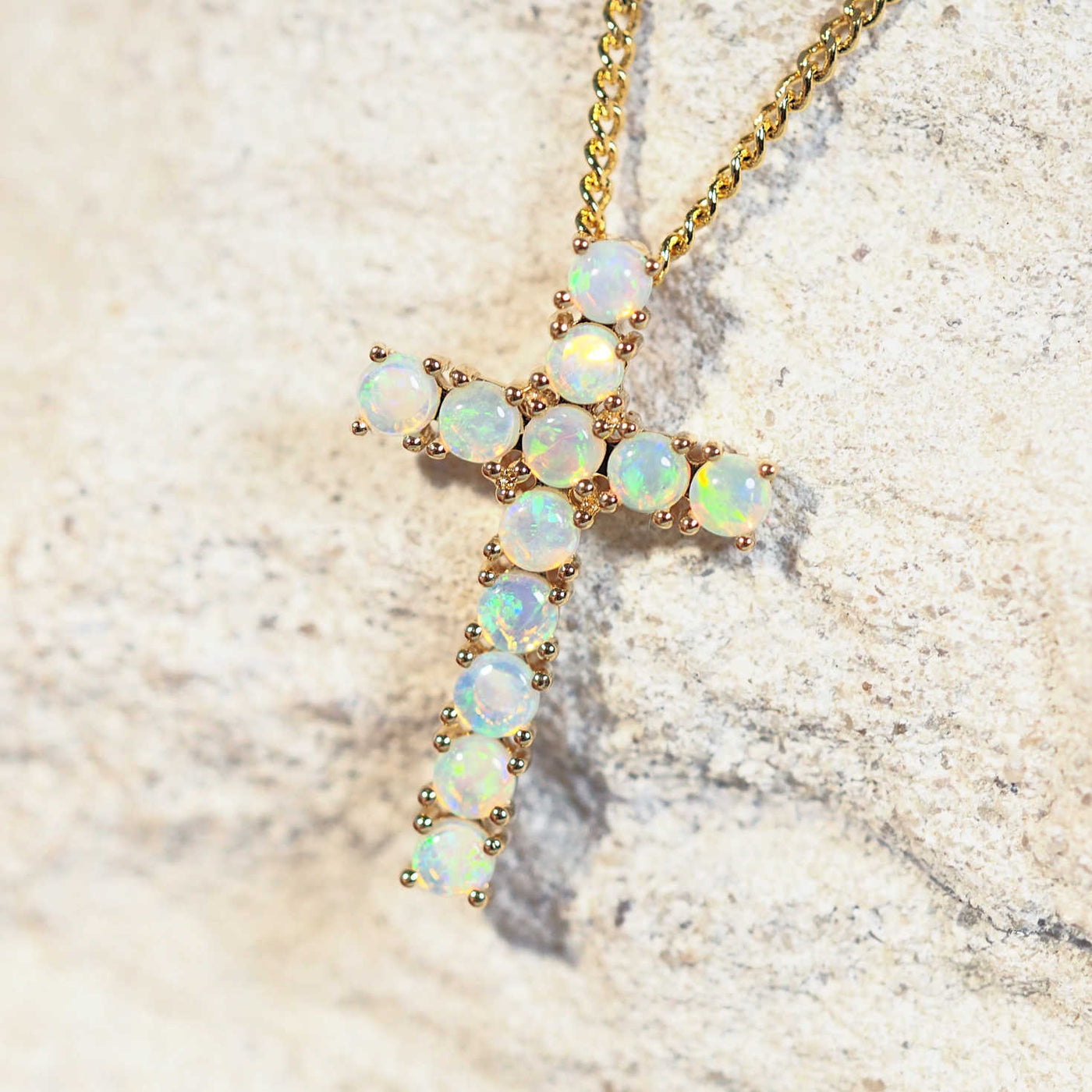 Cross Crystal Opal Necklace 18ct Gold Black Star Opal Very well made.
