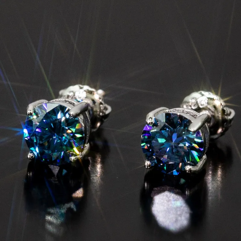 1CT Blue Moissanite Earrings for Men Women 925 Sterling Silver Stud Earrings Bling Diamond Passed Test Nice Gift Very well made.