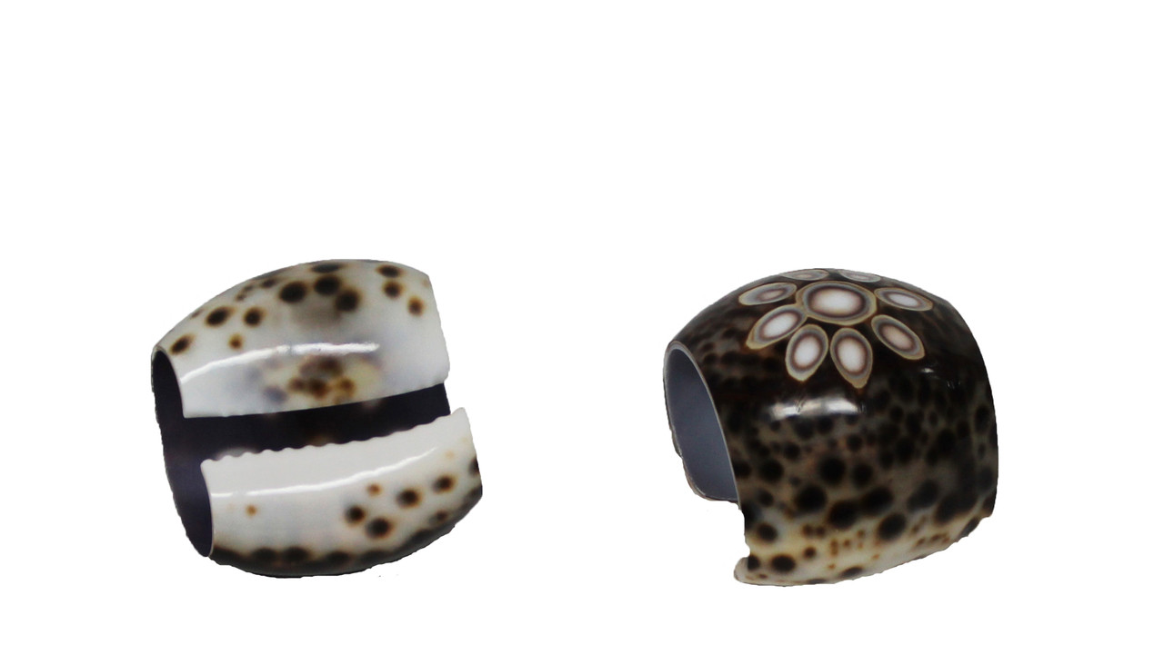 Real Seashell Napkin Rings Set of 8 Tiger Cowrie Shell Napkin Pebble Creek Goods St Paul MN Very well made.
