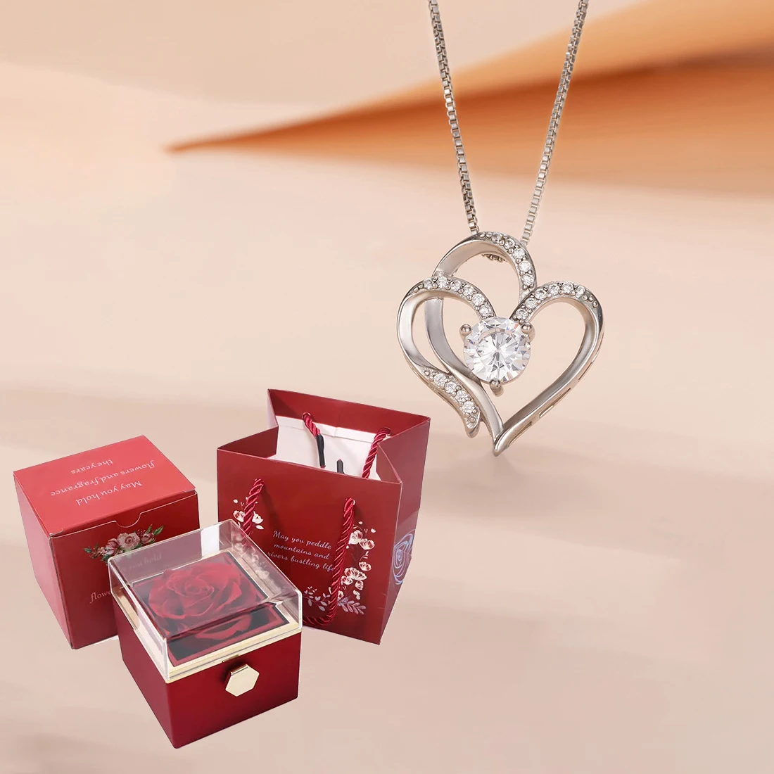 Elegant Heart Zircon Necklace With Rotating Rose Gift Box Luxury Jewelry Set For Girlfriend Wife Momther Romantic Christmas Gift AliExpress Very well made.
