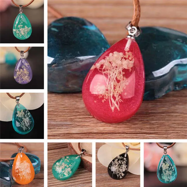 DJN73 Mix Order Resin Water Drop Dried Flower Stone Resin Necklace Pendant Jewelry Very well made.