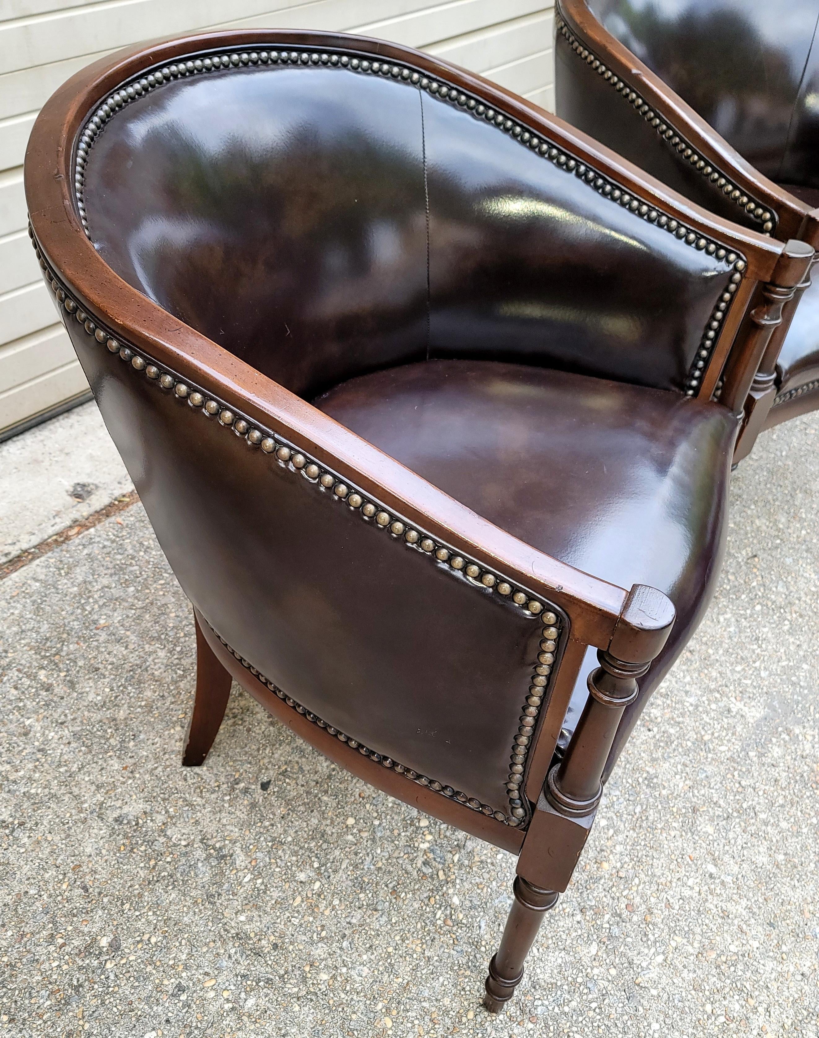 Pair of Vintage Kimball Furniture Regency Style Patent Leather Tub Chairs Very well made.
