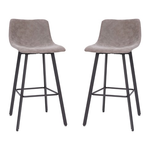 Merrick Lane Set of 2 Modern Gray Faux Leather Upholstered Bar Stools with Contoured Low Back Bucket Seats and Iron Frames Very well made.