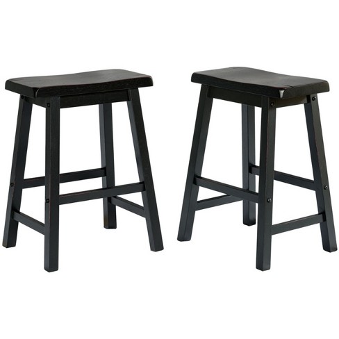 Legacy Decor Set of 2 Saddleback 24 Counter Height Stools in Distressed Black Finish Very well made.
