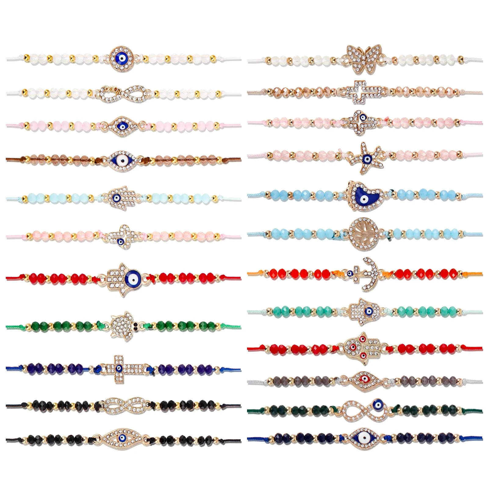 Dropship 14 Pcs String Evil Eye Bracelets For Women Men Mexican Bracelets Pack Adjustable 7 Knots Bracelets Hamsa Hand Evil Eye Protection Bracelets Red Black Blue Lucky Bracelets to Sell Online at Very well made.