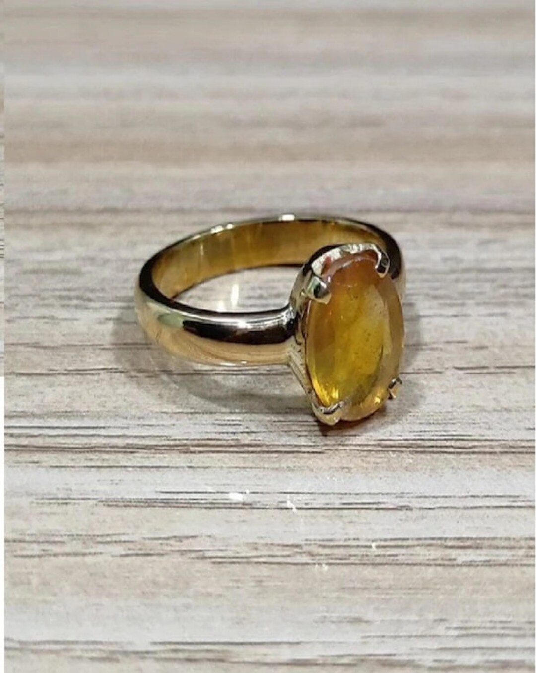 Natural Yellow Sapphire Pukhraj September month stone Gold Plated Ring 2.25 to 9.25 ratti Simple Oval Shape For Mens Womens ring size IND 6 28 Very well made.