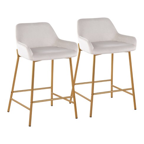 Set Of 2 Daniella Metal velvet Counter Height Barstools Gold white Very well made.