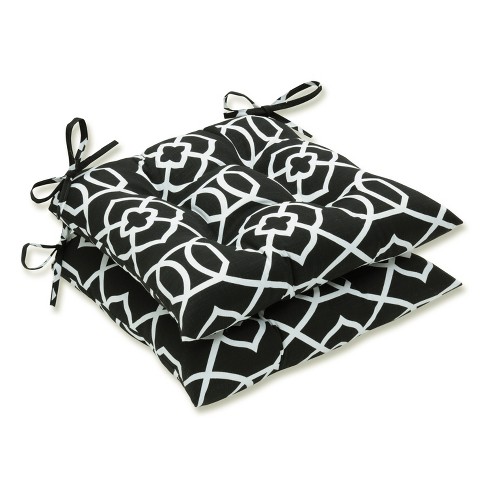 Outdoor Indoor Kirkland Black Wrought Iron Seat Cushion Set of 2 Pillow Perfect Weather Resistant Geometric Pattern Tufted Design Very well made.