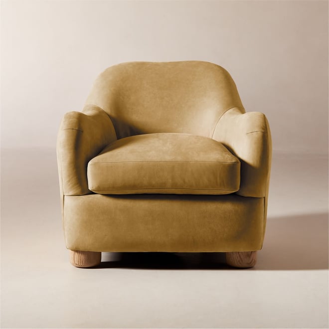Bacio Caramel Brown Leather Chair by Ross Cassidy CB2 Very well made.