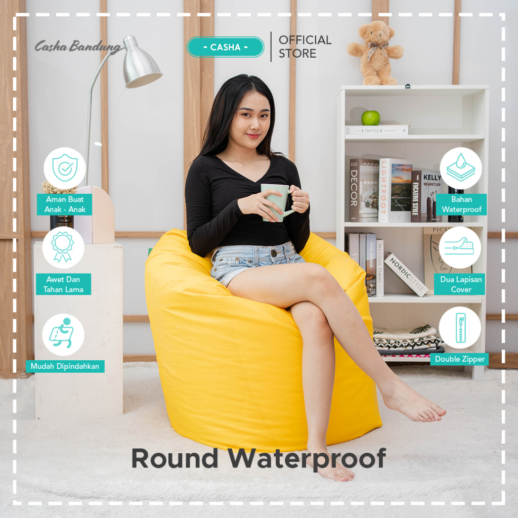 Jual CASHA Round Bean Bag MEDIUM Bahan WATERPROOF PLUS ISI Bean Very well made.