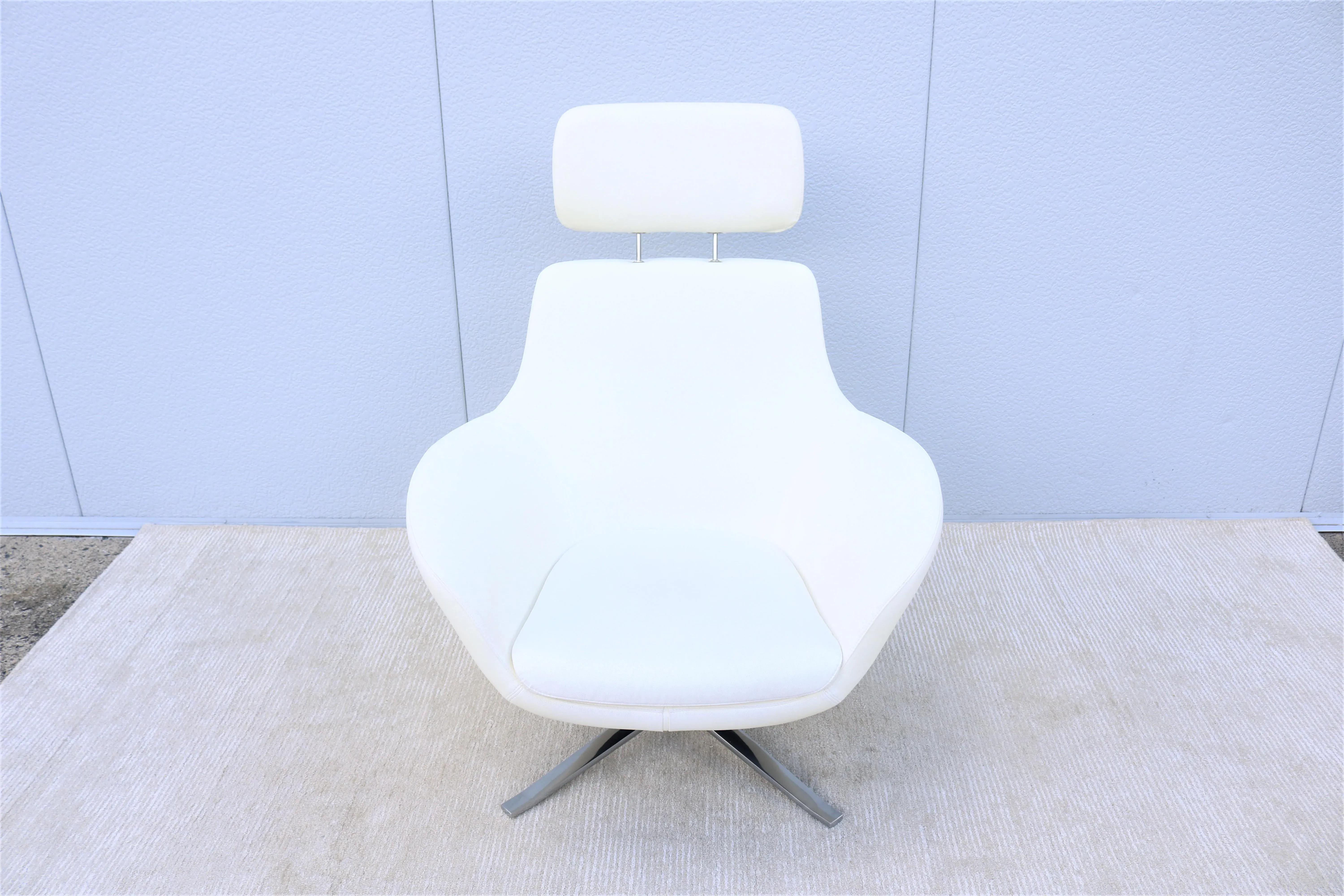 Modern Pearson Lloyd for Coalesse Bob White Leather Swivel Lounge Very well made.