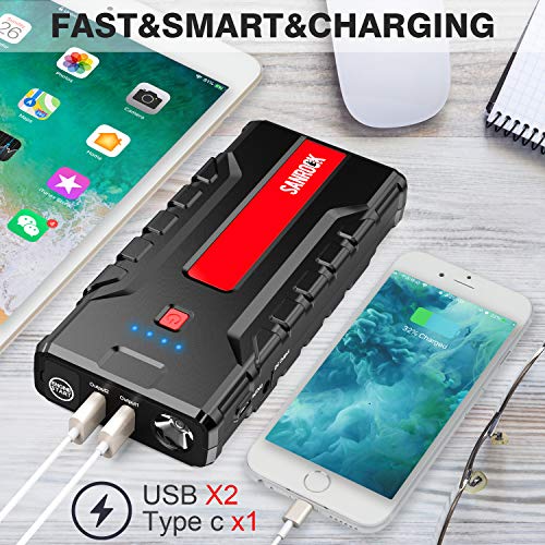 SANROCK Portable Jump Starter for Car 1800A Peak 18000mAh up to 8.0L Gas 6.5L Diesel with LCD Screen 12V Auto Battery Booster Type C Port Quick USB Charge Power Pack with Built in LED light in Very well made.