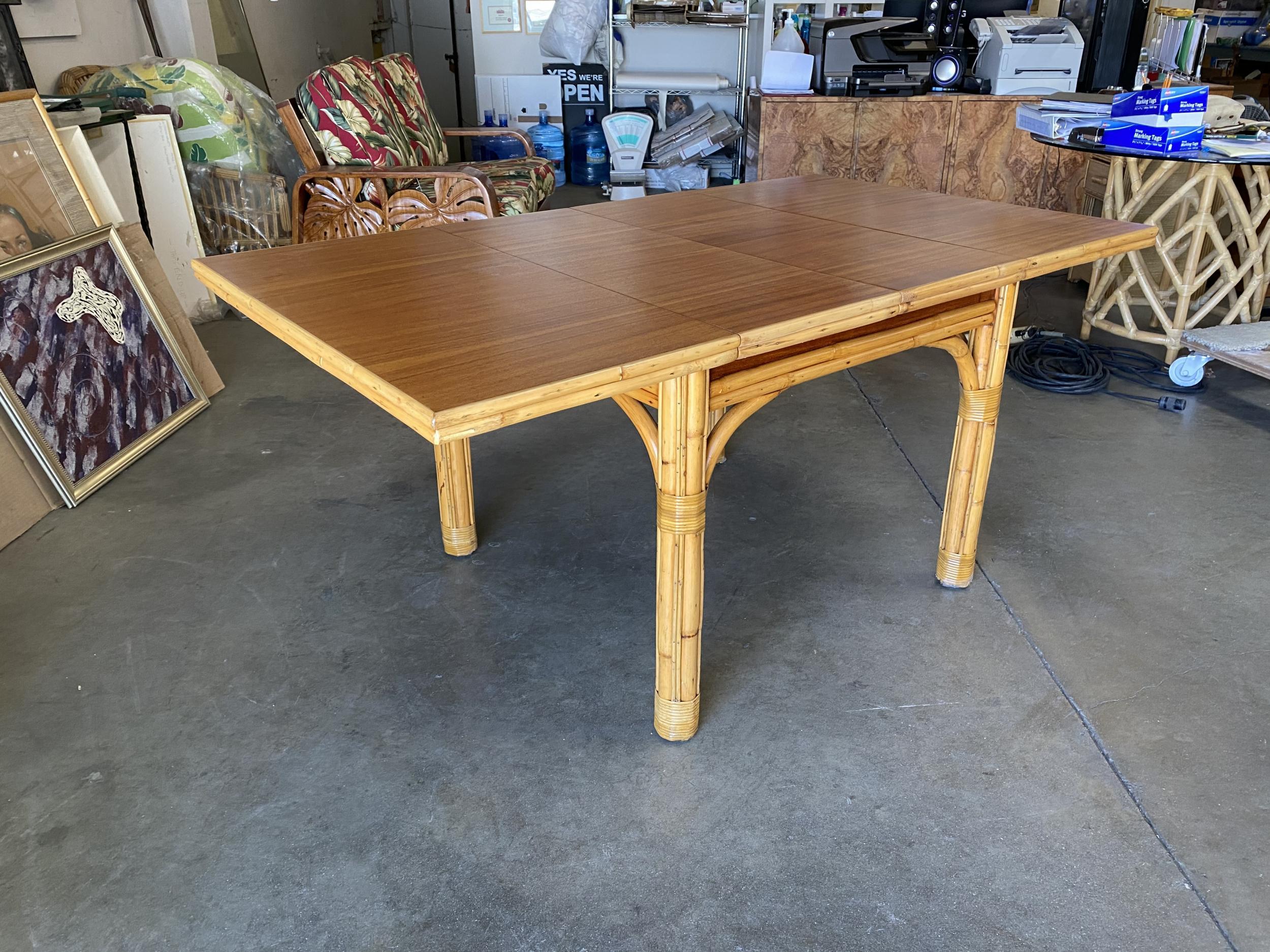 Mid Century Rattan and Mahogany Expandable Dining Table Very well made.
