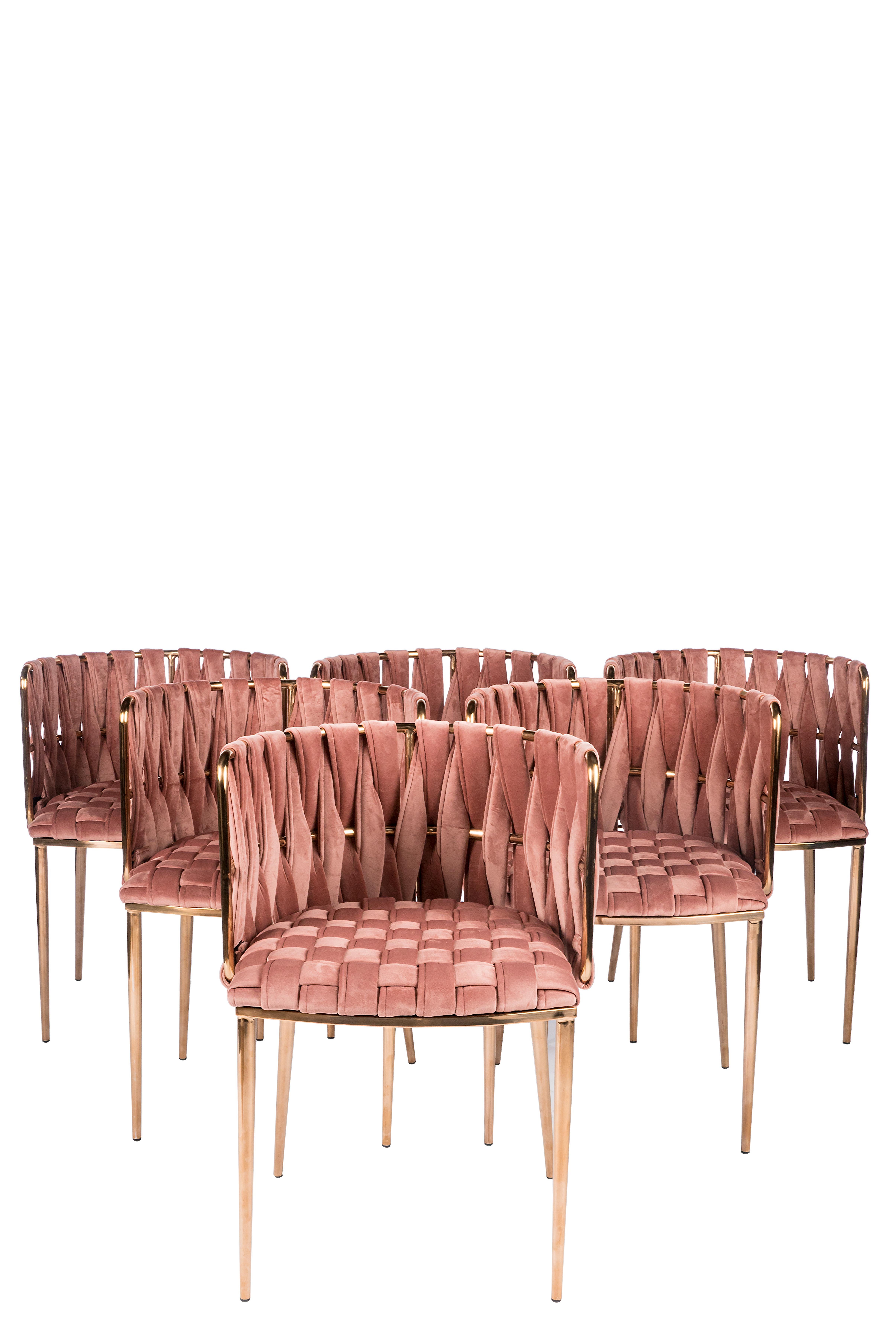 Modern Milano Rose Velvet and Gold Dining Chairs Set of 6 Very well made.