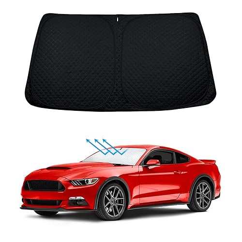 BESTVIEW Windshield Sun Shade Compatible with Ford Mustang 2015 2024 Foldable Reflective Sun Visor Protector Upgraded 3 Layers 210T Material in Oman Whizz Windshield Sunshades Very well made.